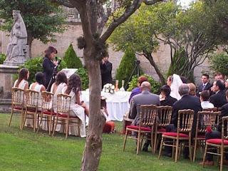 La ceremonia fue muy completa : lecturas de ambas hermanas , ceremonia de la arena con sus dos hijas participando activamente, arras, alianzas, recuerdo a una persona muy querida …. en fin y lo mejor es que a pesar de muchas malas predicciones no nos llovió ¡¡¡¡