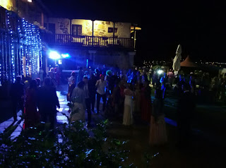 LA noche del Ribeiro llego con uno de los atardeceres más bonitos de la zona , las pequeñas princesas se marcharon a soñar al son de la nana que su madre había previsto y que les cantaron en directo . LA cena transcurrió con todas las sorpresas previstas y los fuegos artificiales iluminaron el baile nupcial para iniciar una fiesta hasta altas horas de la madrugada .